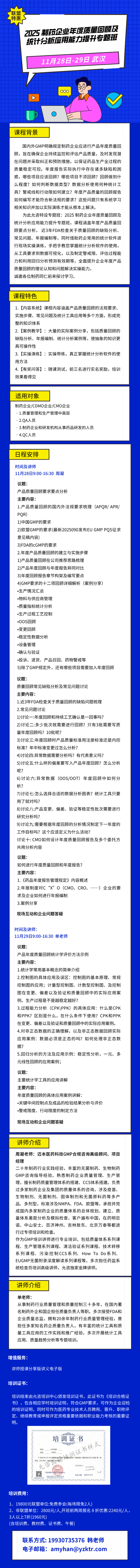 【11月28日-29日 武汉】2025 制药企业年度质量回顾及统计分析应用 能力提升专题班