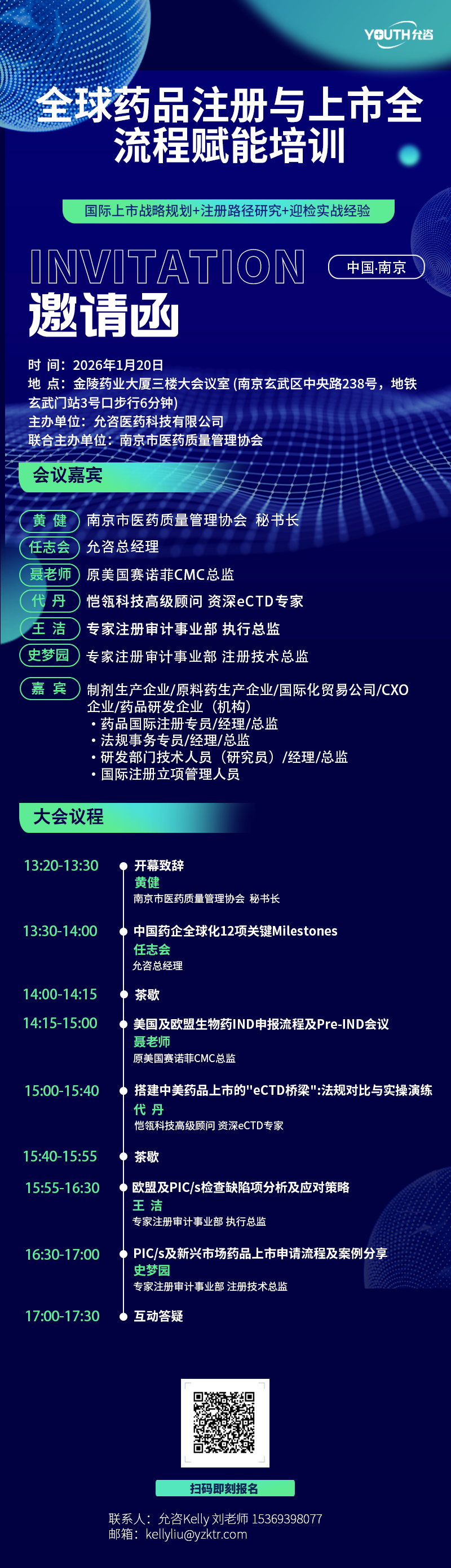 免费参会【南京站】1月20日 全球药品注册与上市全流程赋能峰会